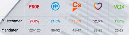 Som det ses, vandt PP og PSOE på metoden, mens Podemos og Ciudadanos tabte og gruppen af mindre partier tabte voldsomt