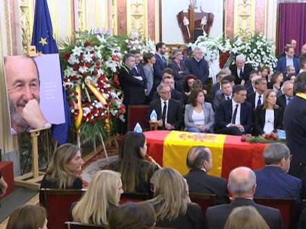 Alfredo Pérez Rubalcabas båre blev lørdag bragt til Parlamentets kapel, hvor den blev modtaget af hans enke, Pilar Goya, fungerende Premierminister Pedro Sánchez, Ana Pastor fra Kongressens præsidium, Pío García-Escudero fra Senatets samt præsidenterne for henholdsvis Forfatningsdomstolen og Højesteret Juan José González Rivas og Carlos Lesmes.