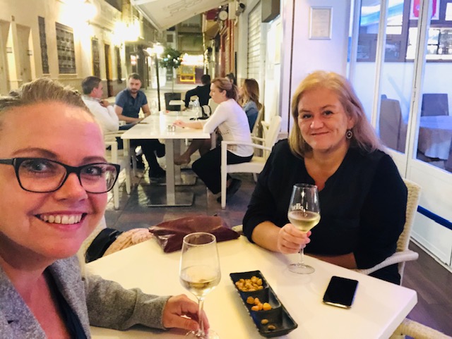 Da vi kommer ned til restauranten, bliver vi nærmest modtaget som berømtheder på den røde løber af det lykkelige personale og ejerne, men med luftkys og albue-goddaw.
