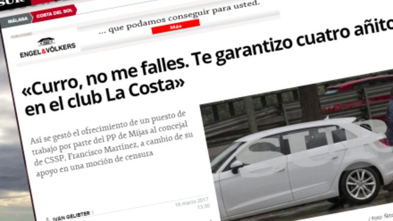 Det sker efter afsløringer af samtaler mellem Martín og kommunalbestyrelsesmedlem for Podemos i Mijas, Francisco Martínez. Af optagelserne fremgår det, at PP ville tilbyde et job til gengæld for støtte til en mistillidsafstemning.