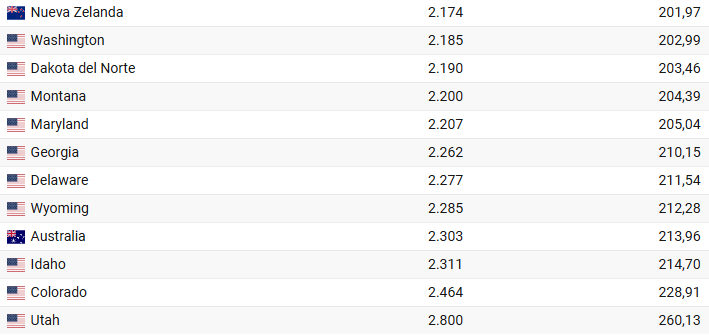 Gennemsnitlig husstandsstørrelse i amerikanske stater og forskellige lande rundt om i verden: