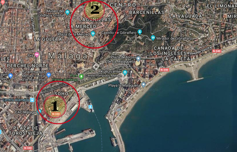 Vi starter i Soho (1) og går så videre til Lagunillas (2) - to meget forskellige kvarterer
