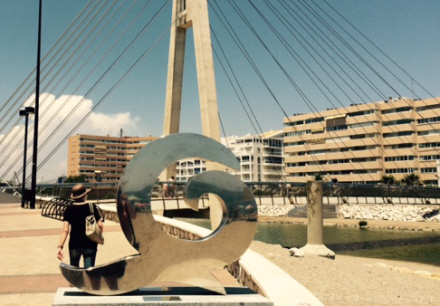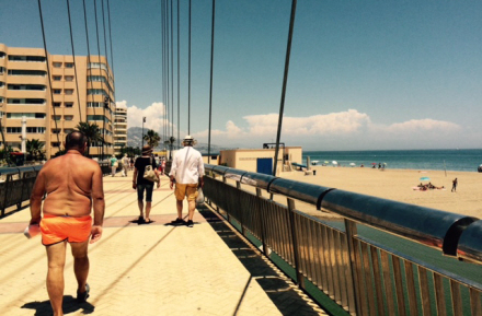 Broen, der forbinder stranden foran borgen med paseoen, der går helt ud til Los Boliches (foto: Rina Trap)