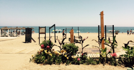 Du kan også lige tage en hurtigt work-out i de gratis "fitness-centre" på stranden