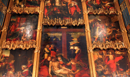 Det er værd at betale for en guidet tur. Det giver dig mulighed for at tage et ordentligt kig på den spektakulære Santa Cruz' altertavle, som stammer fra 1530.