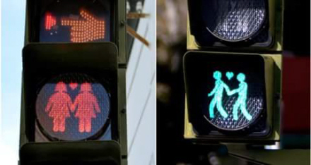 Byen har givet grønt - og rødt - lys til seksuel mangfoldighed ved at installere nye trafiklys i byens fodgængerfelter.