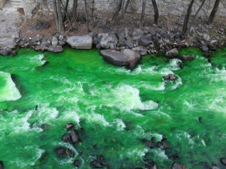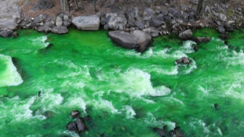 SAMFUND: Lokale fik sig noget af en overraskelse, da vandet i en flod pludselig blev gift-grønt.