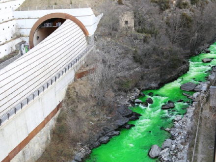 Man bliver helt i tvivl om der er fusket med billederne, når man ser det knaldgrønne vand i Gran Valira-floden i det nordøstlige Spanien.