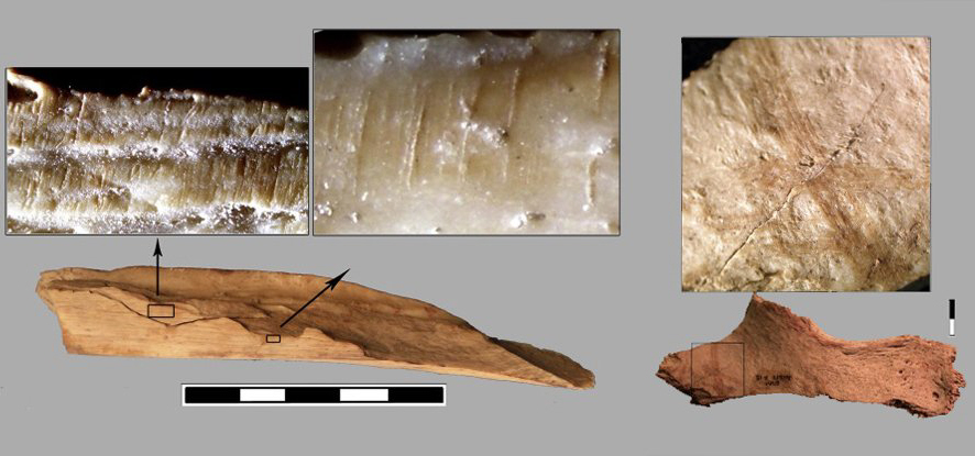 De spanske arkæologer har været grundige i deres arbejde. På mange af knoglerne har de fundet mærker, der antyder at nogen har brugt redskaber til at fjerne hud og kød fra dem.