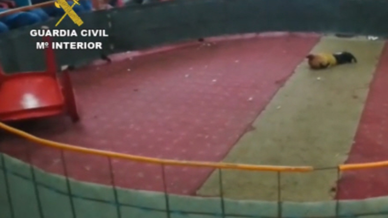 Guardia Civil efterforsker lige nu 23 personer for ulovlig besiddelse af effekter til hanekampe, efter man slog til mod et gammelt hotel i Montijo, Badajoz.