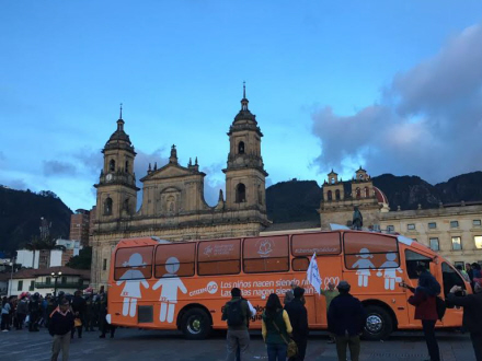 Sådan lyder budskabet, der står på siden af en skrig-orange bus, der i går vendte tilbage til Madrid, efter at have været på turne i store dele af landet.