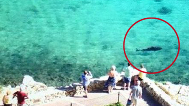 Lokale hævder, at der er tale om en ung hvidhaj på grund af formen og bredden.