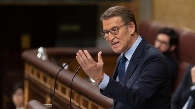 Premierminister Pedro Sánchez nedgjorde Alberto Feijóo ved sit fravær.
