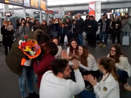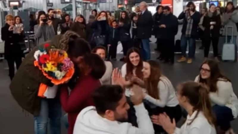 Til tonerne af det kendte popnummer 'Marry You' af Bruno Mars og foran snesevis af mennesker var der amoriner i luften. Det skete på Joaquín Sorolla-stationen i Valencia.