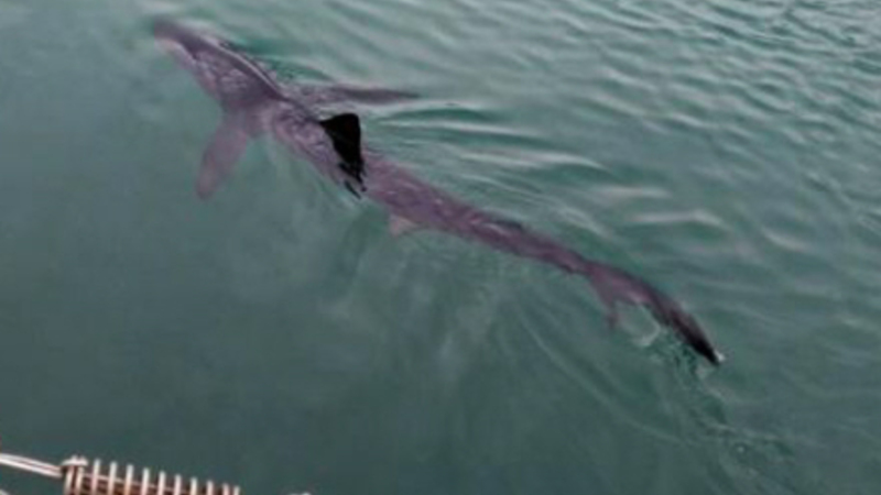 Hajer, der svømmer tæt på de spanske kyster, forekommer af og til, men når det frygtede havdyr pludselig befinder sig helt inde i havnen, er det en anden sag.