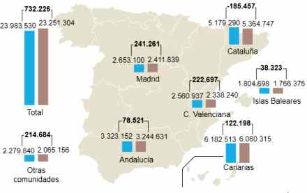 En opgørelse foretaget af Spaniens statistiske kontor (INE) over antallet af turister i perioden oktober 2017 til og med februar 2018 sammenlignet med samme periode året før, viser en stigning i antallet af turister på 732.225.