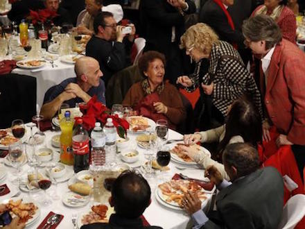 Dette år var anden gang, at middagen blev afholdt, og ligesom sidste år deltog også borgmester Manuela Carmena, der ønskede alle de hjemløse en glædelig jul, inden de kastede sig over lækkerierne.