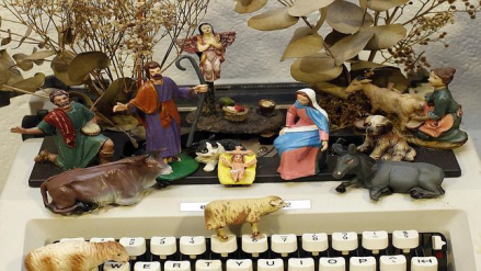 Fantasien fejlede ikke noget: Julekrybbe på en skrivemaskine