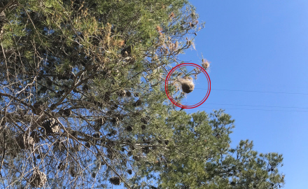 Hvis der er reder i nærheden af dit hjem, kan du beskære træerne og brænde rederne for på den måde forhindre udklækning af larver. Du kan også sprøjte rederne med insektgift.