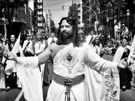 Her havde han et bar-skuldret Jesus-kostume på og sendte angiveligt kys og velsignelser til folk.