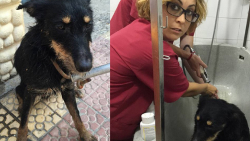 DYR: Fireårig hund var døden nær, da den lå fastklemt under en cykel i bagagerummet af en bil i 45 graders varme.