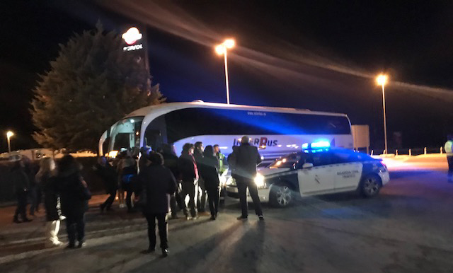 Cirka 20 minutter efter vi er kørt fra Málaga, kører chaufføren af motorvejen og siger, at vi må køre tilbage og skifte bus. Han kører dog igen på motorvejen mod Antequera og fortsætter i et kvarter, før han igen kører fra, vender og kører så mod Málaga.