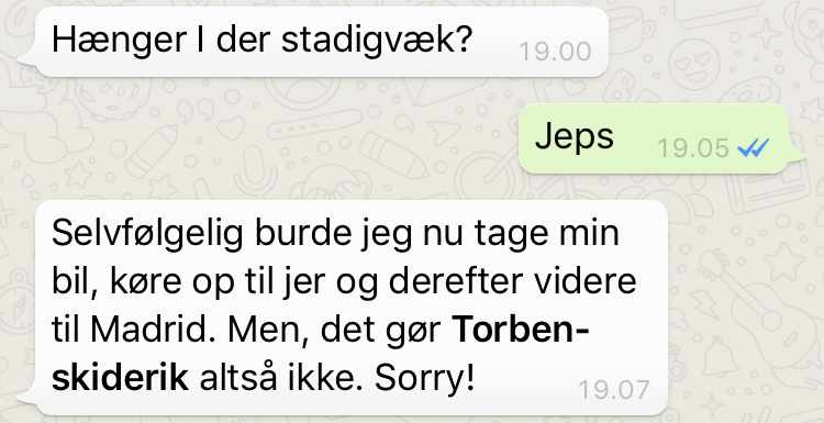 Min chef, Torben Wilkenschildt, tilbyder også næsten er komme os til undsætning. Det luner...
