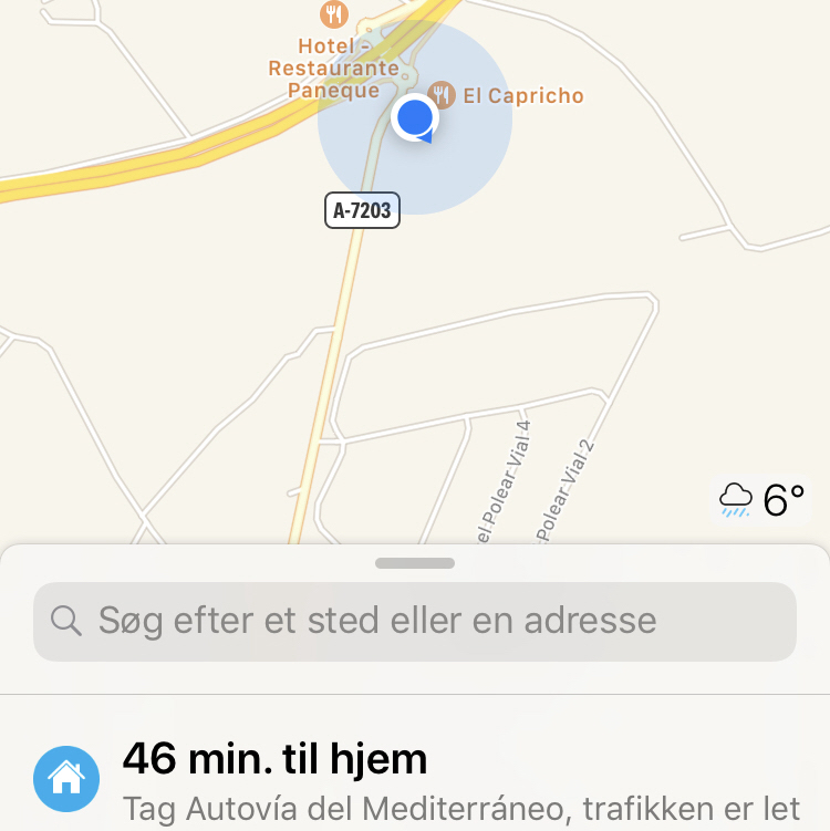 Det er altså også ret komisk at se på kortet, at der er tre kvarters kørsel til Fuengirola, som vi forlod for fire timer siden: