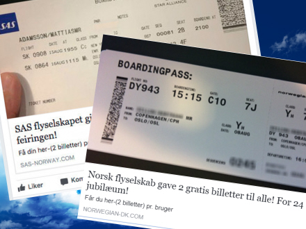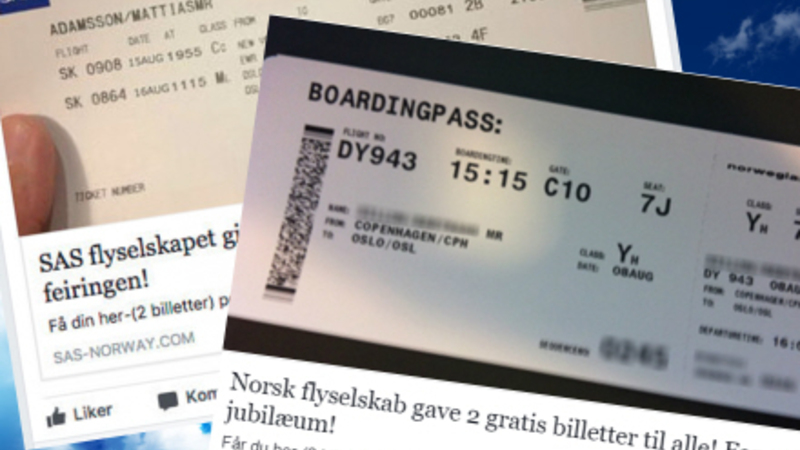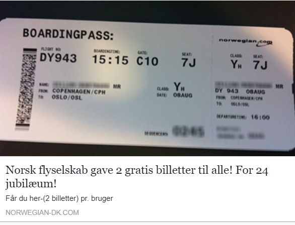 Som for eksempel i de seneste dage, hvor folk i ét væk deler opslag fra "SAS" og "Norwegian", der uddeler gratis flybilletter! Hvor fedt, ikke?