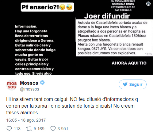 Og Mossos måtte også bruge værdifuld tid på at bede folk om at være kritiske, inden de bare hovedløst deler til højre og venstre: