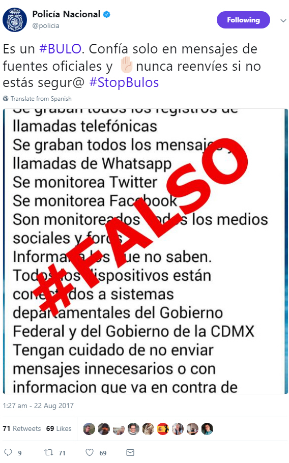 Og det foregik også mange andre steder i landet. Policia Nacional måtte også bruge kræfter på at bede folk om at undlade at dele den slags: