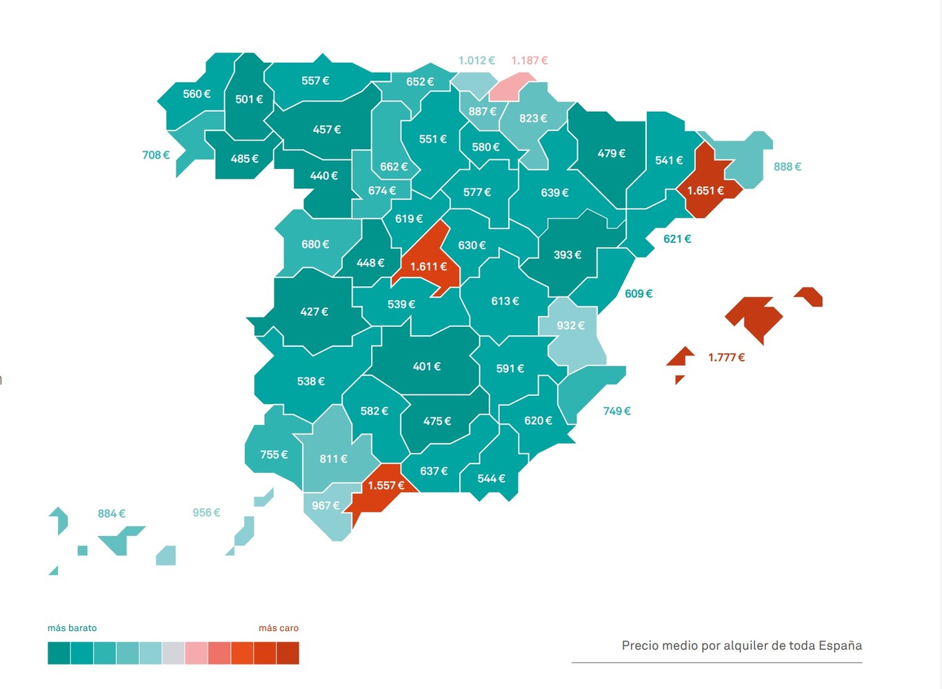 "Den gennemsnitlige lejepris i Spanien var på 1.097 euro i juni, hvilket var en stigning på 6,97 procent i forhold til forrige kvartal."