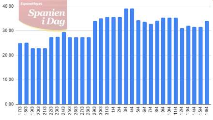 Gennemsnittet for hele Spanien ligger i øjeblikket højere end det danske gennemsnit