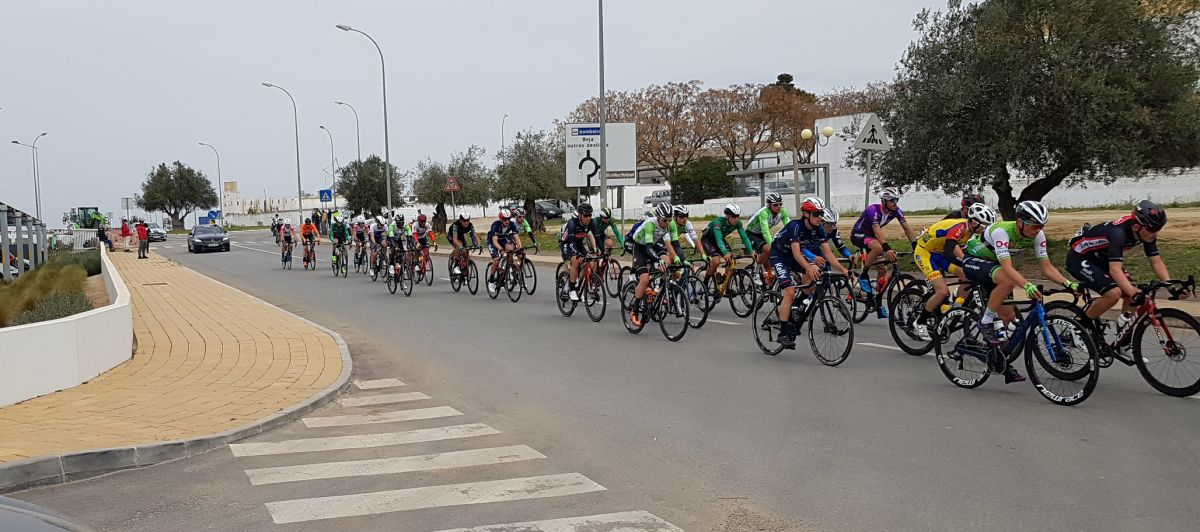 Her bliver vi holdt tilbage af et større cykelløb som skal passere