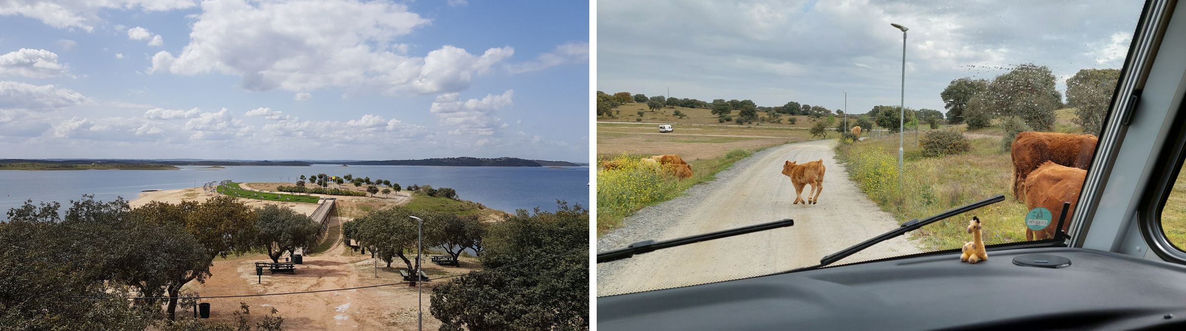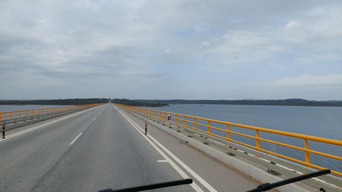 På landevejen N-256, hvor vi kører over en af de store broer i søen mod Monsaraz.
