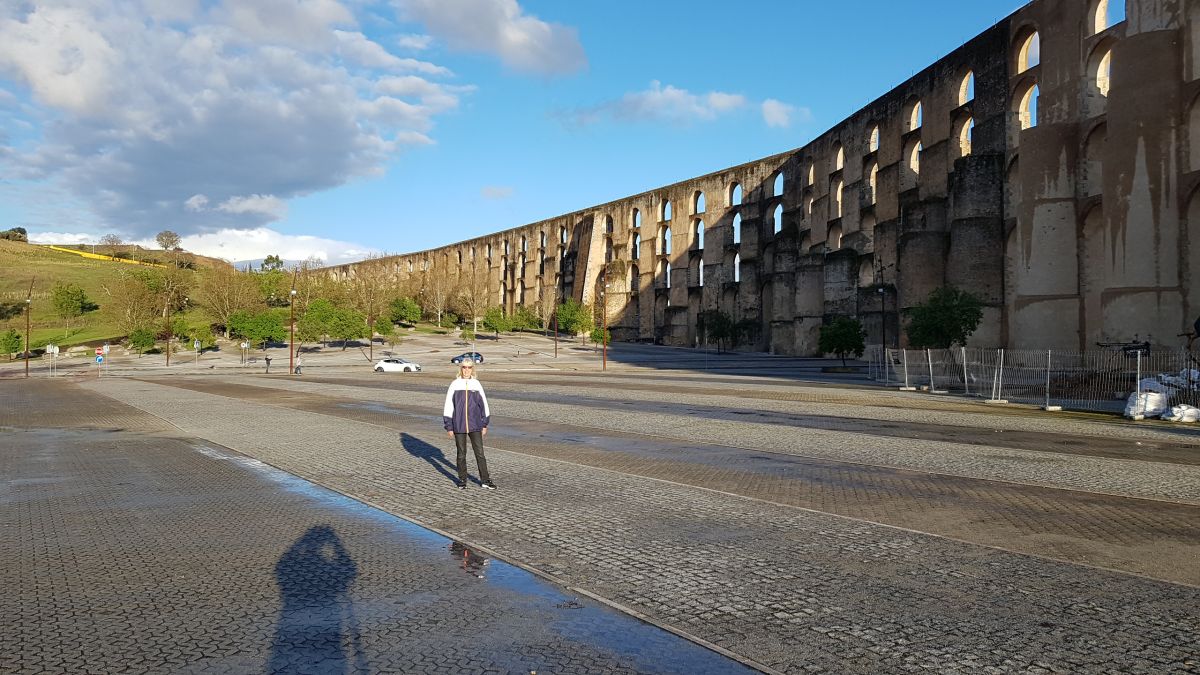 Her finder vi en god plads at holde på - med udsigt til Amoreira akvædukten