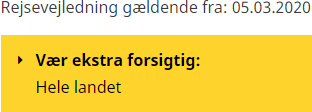 De lokale myndigheder kan implementere nye tiltag med kort varsel. Du bør altid følge de lokale myndigheders anvisninger. Du bør også altid følge Sundhedsstyrelsens råd: https://www.sst.dk/corona.”