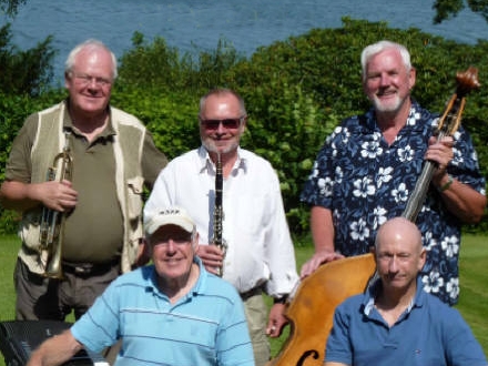 Mød de glade musikere Peter Madsen på trompet, Erling Haagensen på klarinet, Ethan Weisgaard på tromme, Arne M. Sørensen på bas og Jørgen Poulsen på piano.
