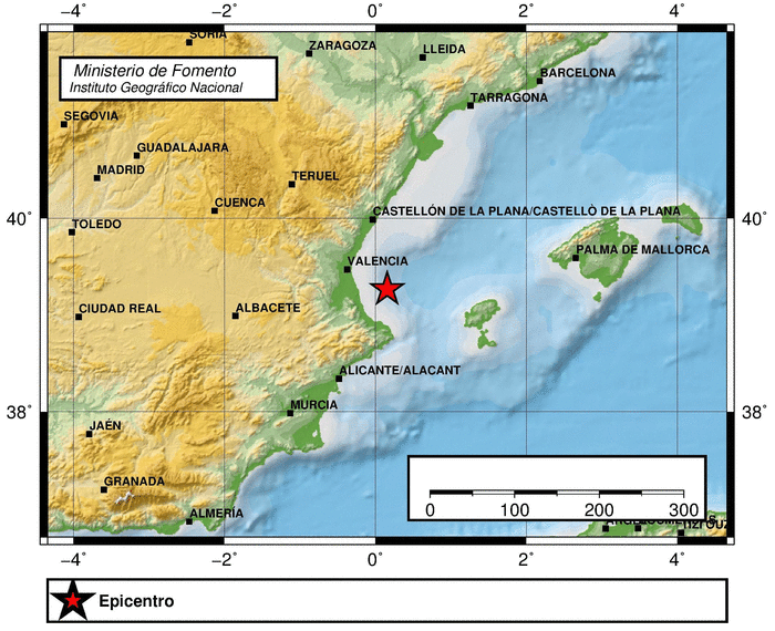 Skælvet opstod i 12 kilometers dybde og havde epicenter i havet ud for kysten mellem byerne Cullera og El Perelló.