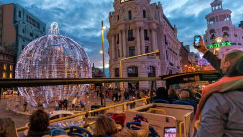 OPLEVELSE: Skru helt op for hyggen og tag julebussen på rundtur i Madrid. Her kan du opleve julelysene i øjenhøjde på den helt magelige måde.