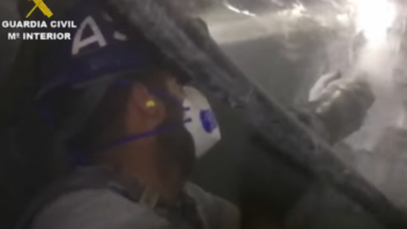 Meget af tværtunellen blev udgravet ved håndkraft med hjælp fra fire kontrollerede mikroeksplosioner som ses her (fra en anden operation, red.):