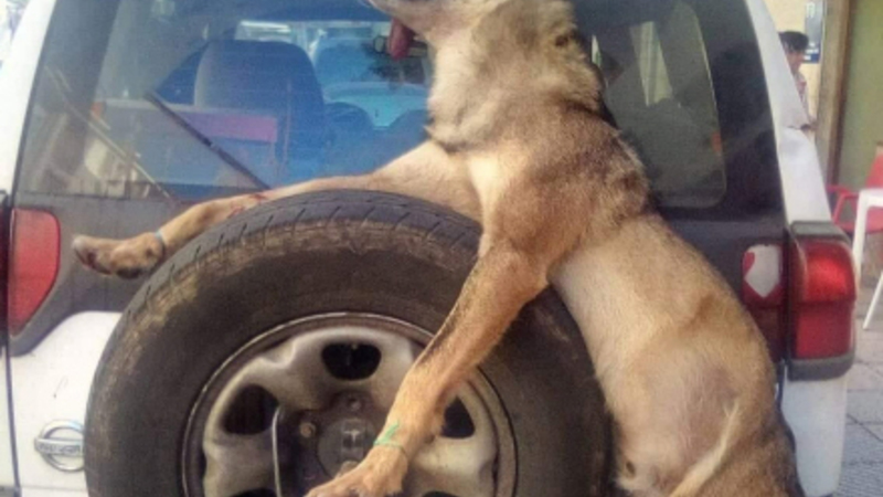 Et ulvekadaver var blevet klynget op på bagsiden af bilen til frit skue for alle forbipasserende, mens bilens ejermand slukkede tørsten på en nærliggende bar.