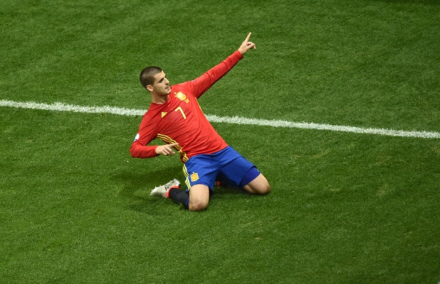 Holdet viste sprudlende fodboldspil, og allerede efter ti minutter var Alvaro Morata tæt på at bringe storfavoritten i front, men hans hovedstød prellede af på stolpen.