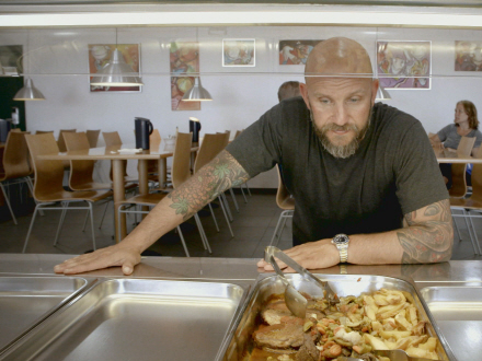 Her er ingen betalende gæster, da de allerede er blevet betalt for af de danske myndigheder, så måske er det derfor, køkkenchefen Pepe er faldet lidt af på den.