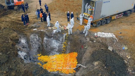 Ifølge en rapport fra de lokale myndigheder i byen, der ligger i det nordlige Kina, blev frugterne med en samlet vægt på 20.000 tons og pris på 14.000 euro destrueret, fordi de ”ikke blev godkendt under sundhedstest.”