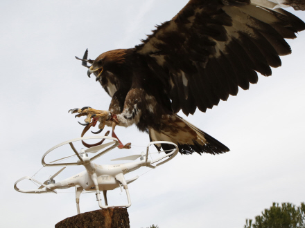 Specialtrænede ørne er med deres træner blevet ansat til at holde styr på det nære luftrum omkring Madrids Zarzuela Palads.