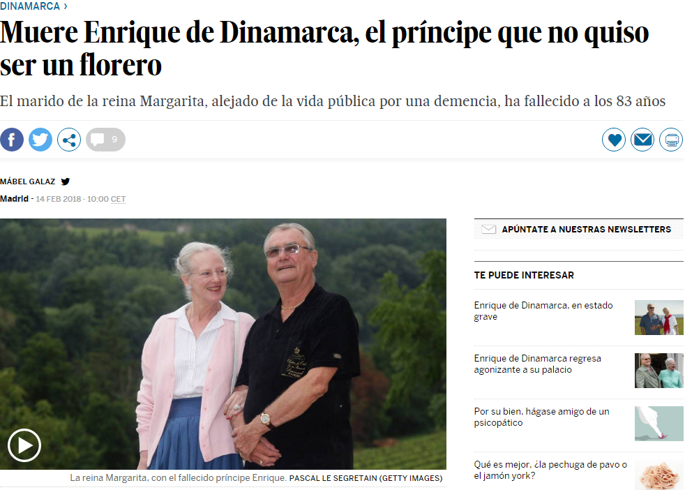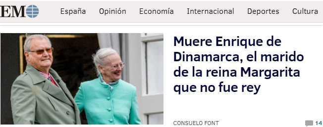 KONGELIGE: Prins Henrik af Danmark er død, og den sørgelige nyhed har også fundet vej til de spanske medier.