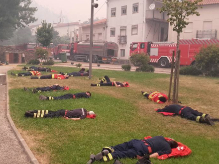 Billedet her og i toppen af artiklen viser brandmænd, der får et hårdt tiltrængt hvil under kampen mod flammerne (foto: Facebook - Respeito pelos Bombeiros)