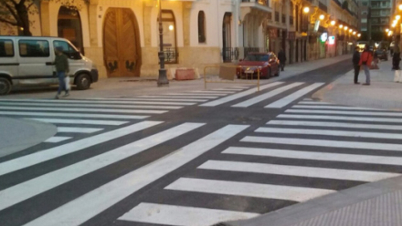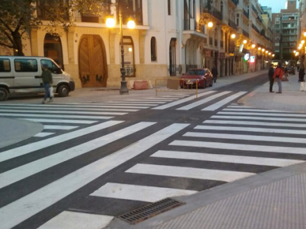 Det drejer sig om krydset i Calle Cirilo Amoros og Calle Pizarro, der ser noget anderledes ud, efter fortorvet i begge gader er blevet gjort bredere.
