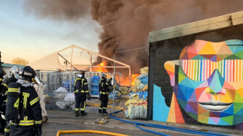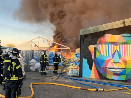 I alt står fire industribygninger med opbevaring af plast og papir i Fuencarral i flammer. Der er ingen tilskadekomne, men 14 brandmandskaber arbejder på stedet lige nu.